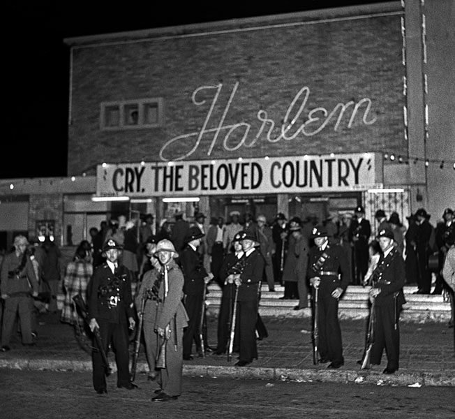 Alan Paton's book "Cry, the Beloved Country" was made into a film in 1950. The film was an attack on the extreme injustices caused by racism in South Africa. It premiered in anumber of alternative cinemas around the country, including the Harlem Cinema in Fordsburg, Johannesburg where the police was out in full force.