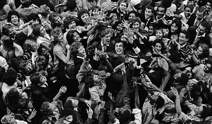 Pop fans looking up at their idol, Cliff Richard, during his visit to South Africa. Information or Purchase Request