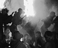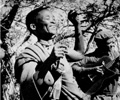 The Dance of Exorcism of the San People of the Kalahari Desert is a ritual trance ceremony which draws out evil spirits from the afflicted. It is performed by the natural leader of the group who combines the role of priest, doctor and psychiatrist. He absorbs the evil forces and spews them out onto the burning embers of the fire in a final act of purification. |