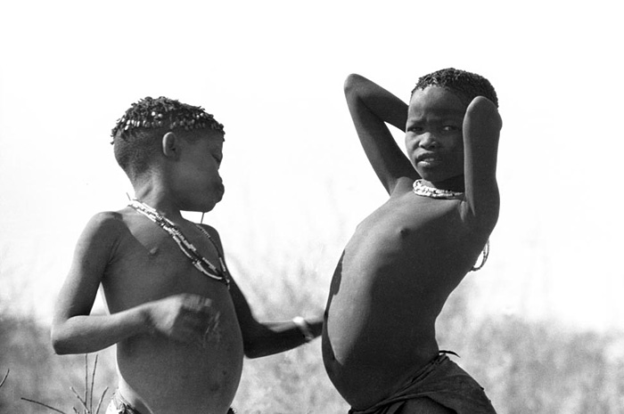 The bow-like shape of the young man is characteristic of the San.