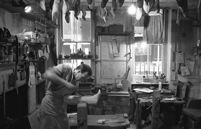 A shoemaker at work in his Soho shop.