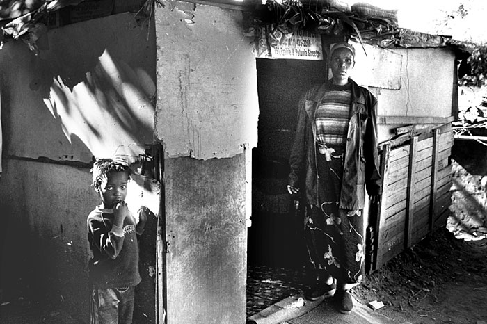 Woman outside shack