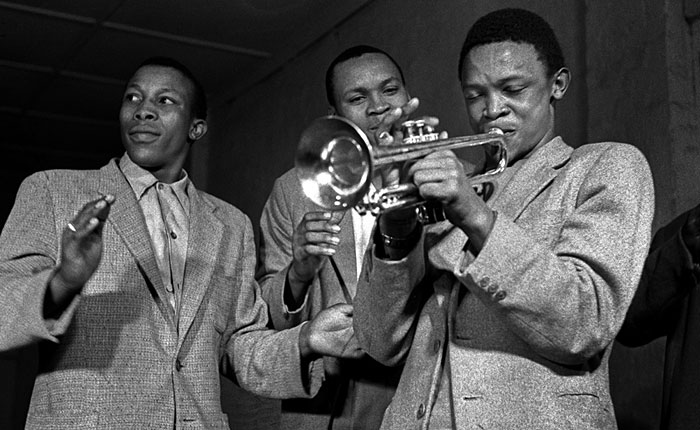 The young Hugh Masekela receives the trumpet from Satchmo, a gift organised by Father Trevor Huddleson, an avid supporter of African jazz and founder of the Huddleson Jazz Band Information or Purchase Request