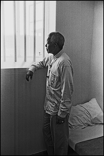 South African president Nelson Mandela revisits his prison cell on Robben Island, where he spent eighteen of his twenty-seven years in prison. Information or Purchase Request