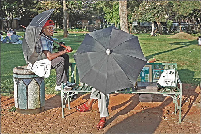 Street photographers in Joubert Park, Johannesburg, waiting for customers.
