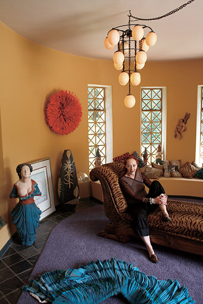 South African fashion designer Marianne Fassler in Johannesburg. Her studio, 'Leopard Frock', creates designer masterpieces for the urban chic. 'My look is exotic African, eclectic, contemporary... My home is like a high South African Art and Craft Museum', says Fassler.