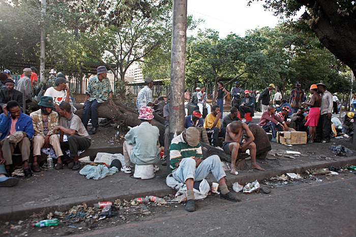 People waiting for taxis in Twist Street on the edge of Joubert Park, Johannesburg. Information or Purchase Request