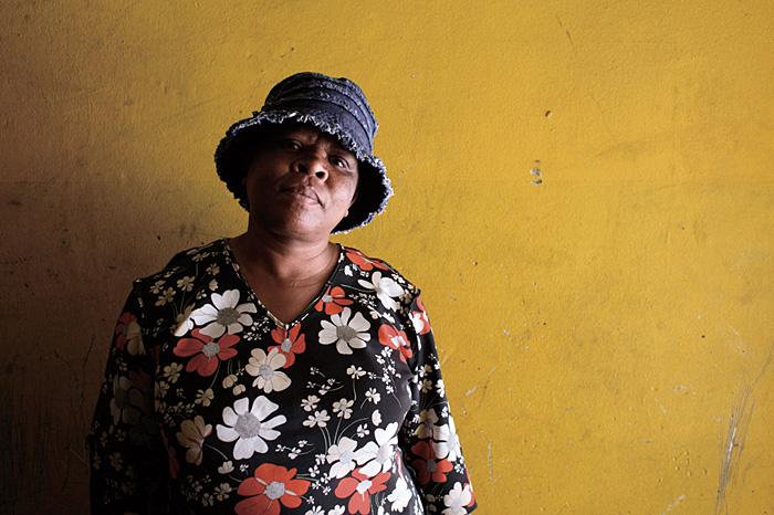Unemployed widow Gloria Khoza (49), who lives Nugget Street at Milton Court, a tenement block with no electricity or water, Johannesburg. She has lived here for 19 years and takes in washing to earn R290 a month. Information or Purchase Request