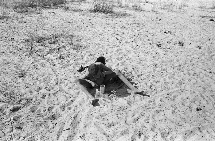 In every decade one can expect four years of drought. This San lady washes herself with a small tin of water. Information or Purchase Request