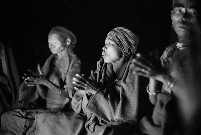 The women, young and old alike, clap to a sharp, staccato rhythm in counterpoint to their singing.
