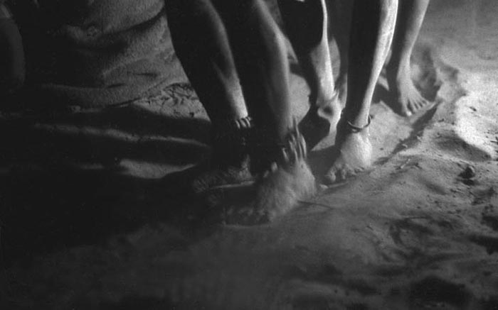 The singing gets louder, the tension increases. The men's feet pound a pattern in the dry sand, stirring clouds of dust. The sound of the rattles tied to their ankles sends echoes into the night.