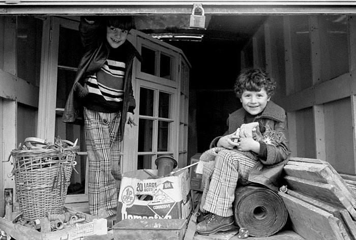 Two kids and kitten