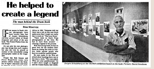 Few names in South African photography have more stature than that of Jurgen Schadeberg, one –time picture editor of Drum magazine and editor of the new book “The Finest Photos from the Old Drum”.